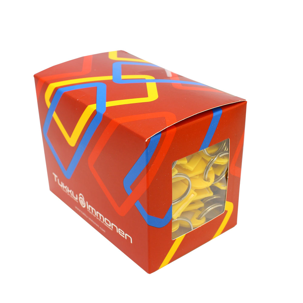 - määrä: pakkauksessa sata kappaletta avaimenperiä.