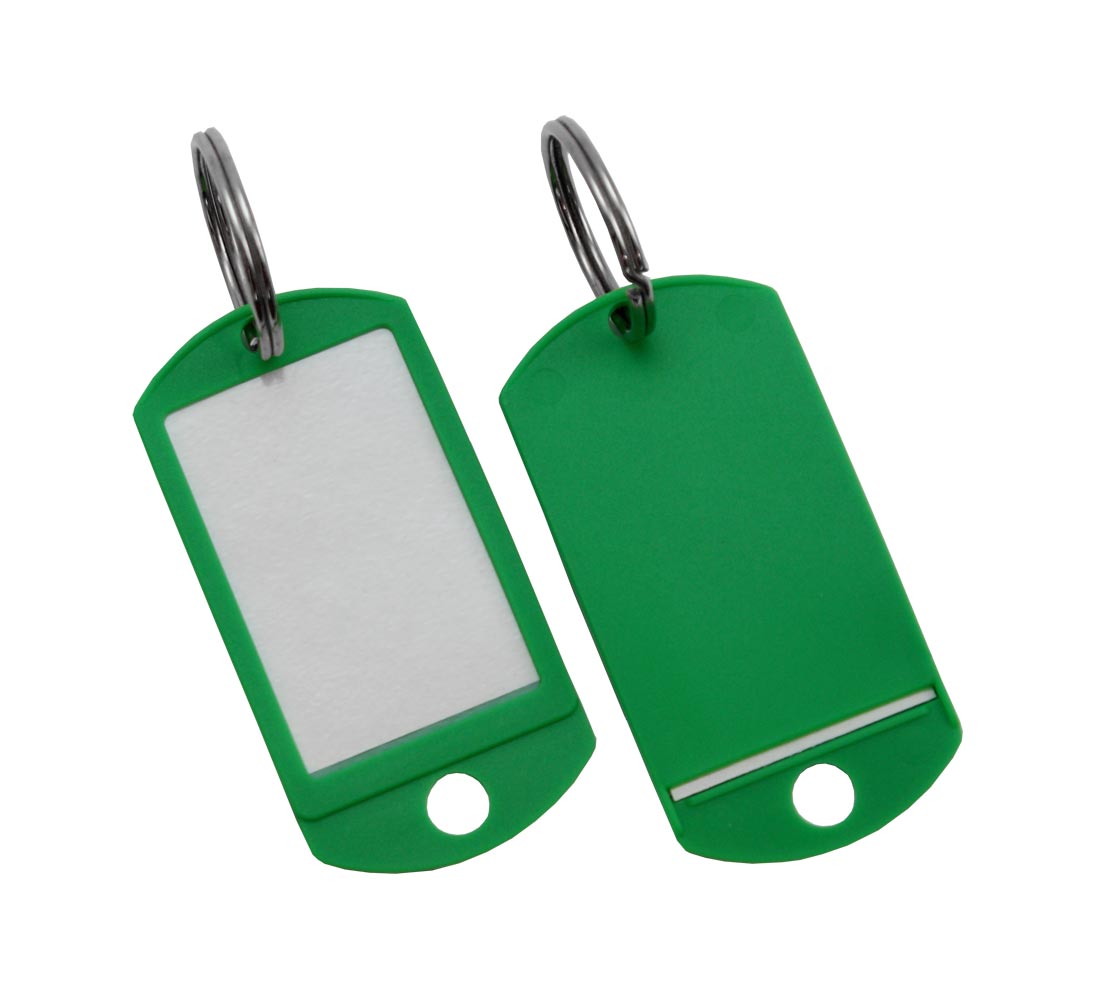 Muovinen avaimenperä nimilapulla. Vihreä.