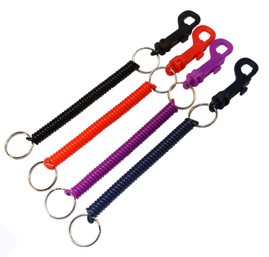 Muovinen avainspiraali muovisella karabiinihaalla.