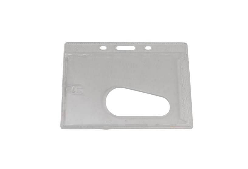 Korttikotelo. Kirkas muovinen korttikotelo henkilökortille yms. Umpinainen kestävä rakenteinen kotelo suojaa korttia naarmuilta ja vahingoittumiselta. Kotelon yläreunassa rei'ät palloketjun pujotusta varten sekä 14 mm levyinen kiinnikereikä. Kortti puristuu koteloon reunasta eikä pääse vahingossa putoamaan. Kortti pujotetaan sivusta. Helppo laittaa ja ottaa pois.
