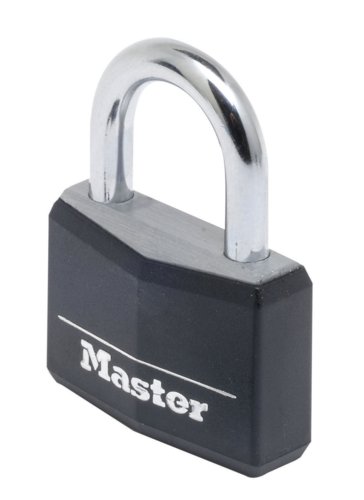 Riippulukko . Musta alumiinirunkoinen 50 mm leveä riippulukko.