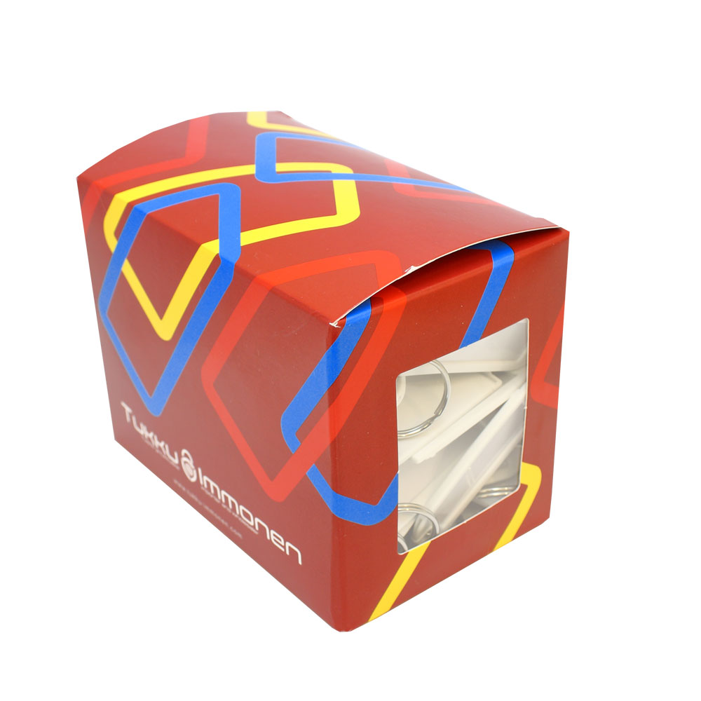 - määrä: pakkauksessa sata kappaletta avaimenperiä.