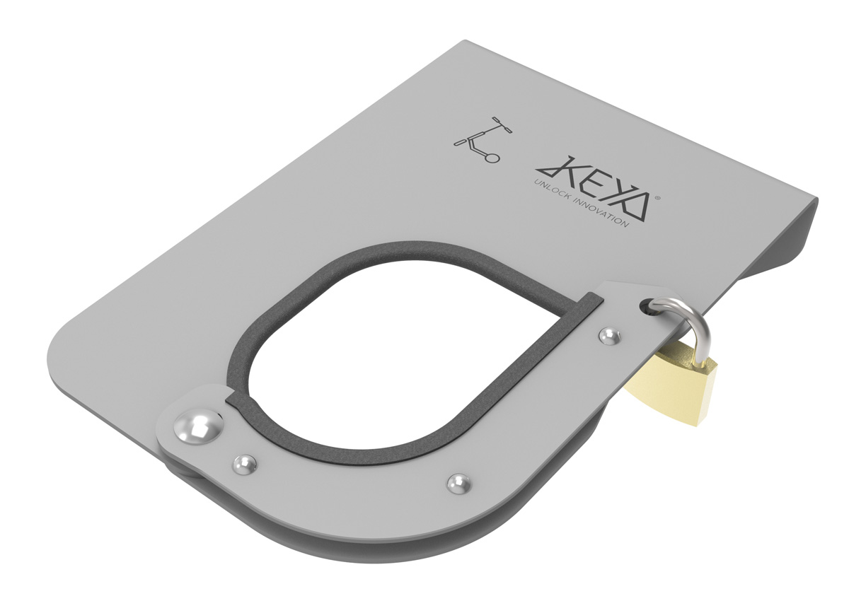Keya-Park seinään kiinnitettävä lukko sähköpotkulaudoille. Kiinnike pultatataan kiinni seinään tai muuhun kiinteään kohteeseen. Kiinnikkeen salpa lukitaan riippulukolla. Tuote soveltuu käytettäväksi sisä- ja ulkotiloissa. Salpa voidaan lukita riippulukolla, jossa sangan halkaisija on maksimissaan 7mm.