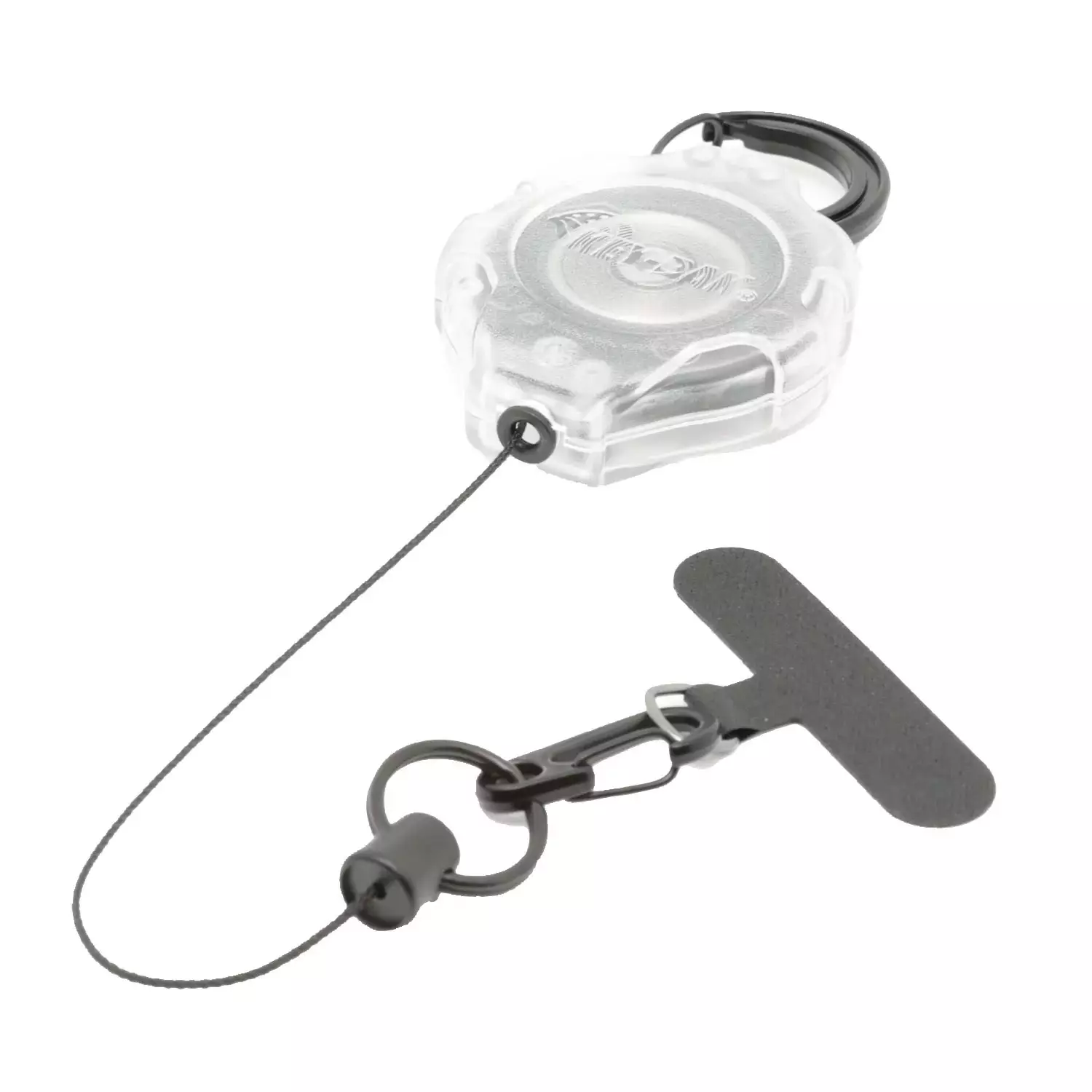 Jojokela puhelinpidikkeellä. Jokaiseen puhelinmalliin sopiva pidike on helppo kiinnittää puhelimen koteloon. Ei tarvita liimauksia tai muita kiinteitä kiinnitystapoja. Pidike jättää latausaukon vapaaksi, jolloin pidikettä ei tarvitse irrottaa latauksen ajaksi. Puhelinpidike kiinnitetään jojokelan vaijeriin pienellä metallisella haalla, joka voidaan tarvittaessa helposit irrotttaa. Phone tether-jojokela estää tehokkaasti puhelimen putoamisen maahan, veteen tai ahtaisiin rakoihin.