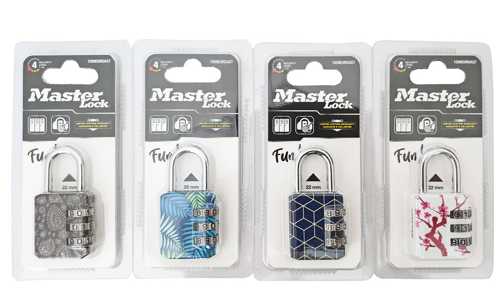 Koodiriippulukko vaihdettavalla koodilla ja värikkäällä kuvioinnilla. Lukossa kolme 10-numeroista koodipyörästöä, jotka mahdollistavat 1000 koodivaihtoehtoa. Lukko soveltuu erinomaisesti esimerkiksi pukukaapin tai matkalaukun lukoksi.
