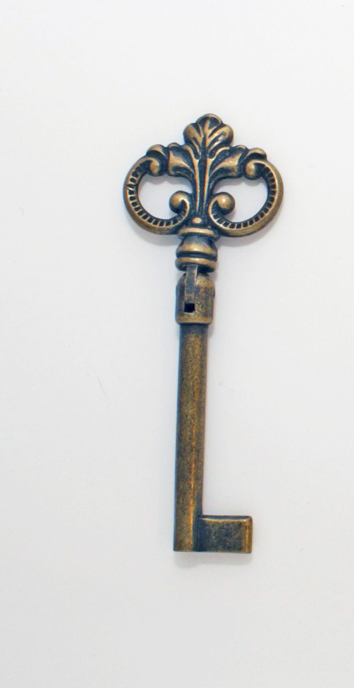 Taittuva koristeavain. Tuotetiedot: Väri: antiikki Avaimen rungon halk.: 6 mm Lehden leveys: 7 mm Lehden korkeus: 10 mm