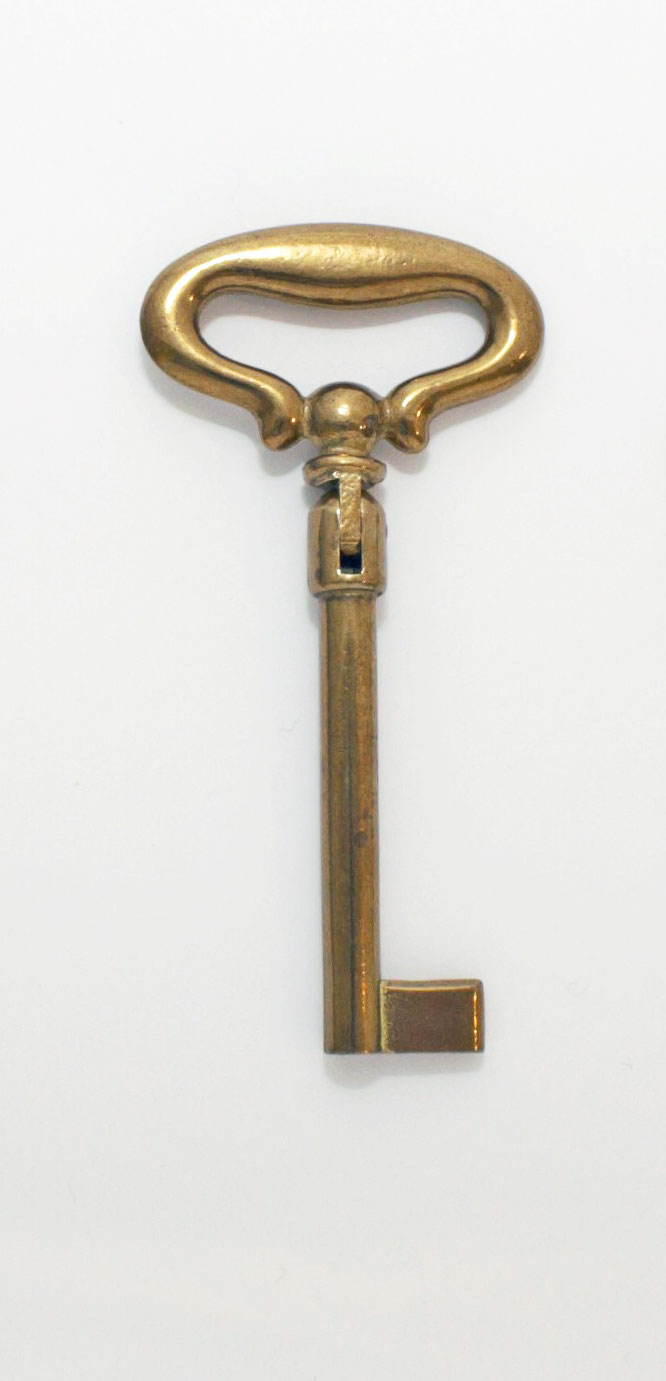 Taittuva koristeavain. Tuotetiedot: Väri: messinki Avaimen rungon halk.: 6 mm Lehden leveys: 7 mm Lehden korkeus: 10 mm