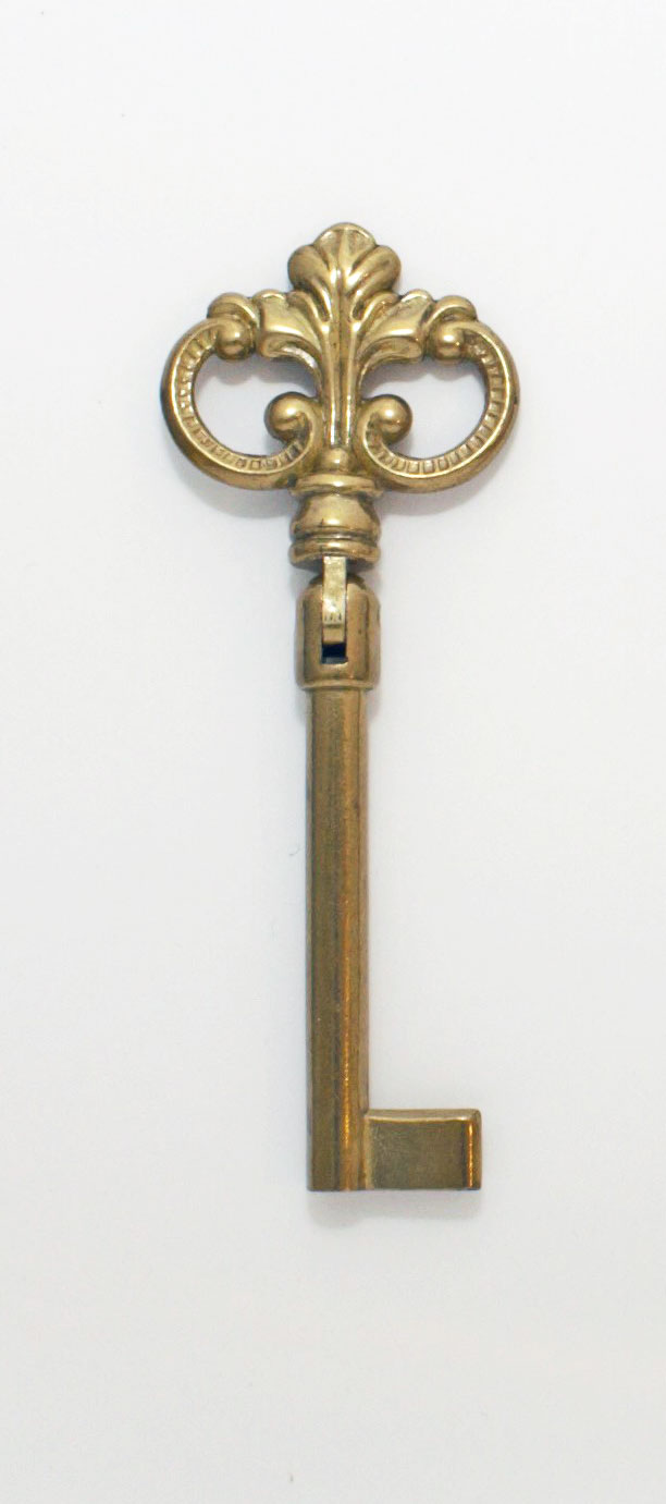Taittuva koristeavain. Tuotetiedot: Väri: messinki Avaimen rungon halk.: 6 mm Lehden leveys: 7 mm Lehden korkeus: 10 mm