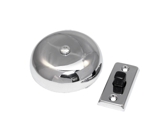 Ovikello . Mekaaninen, kromattu ovikello painonapilla.