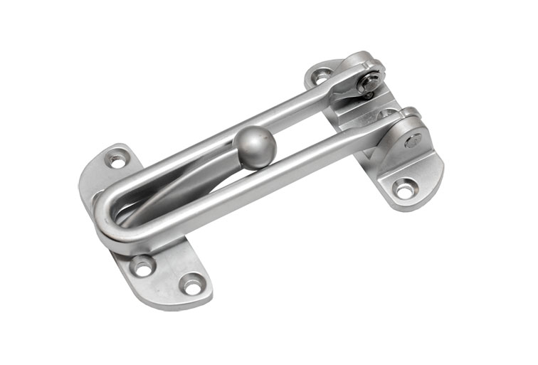 Varmuussalpa. Satiinikromattu varmuussalpa / ovirauta. Asennetaan sisäänpäin aukeavaan oveen.